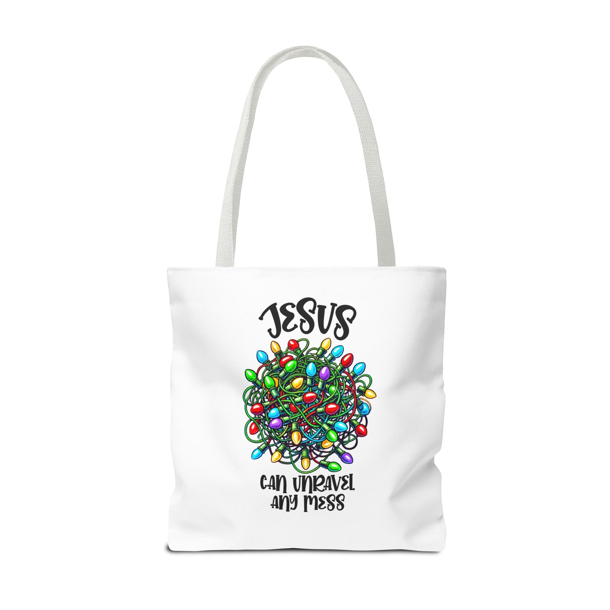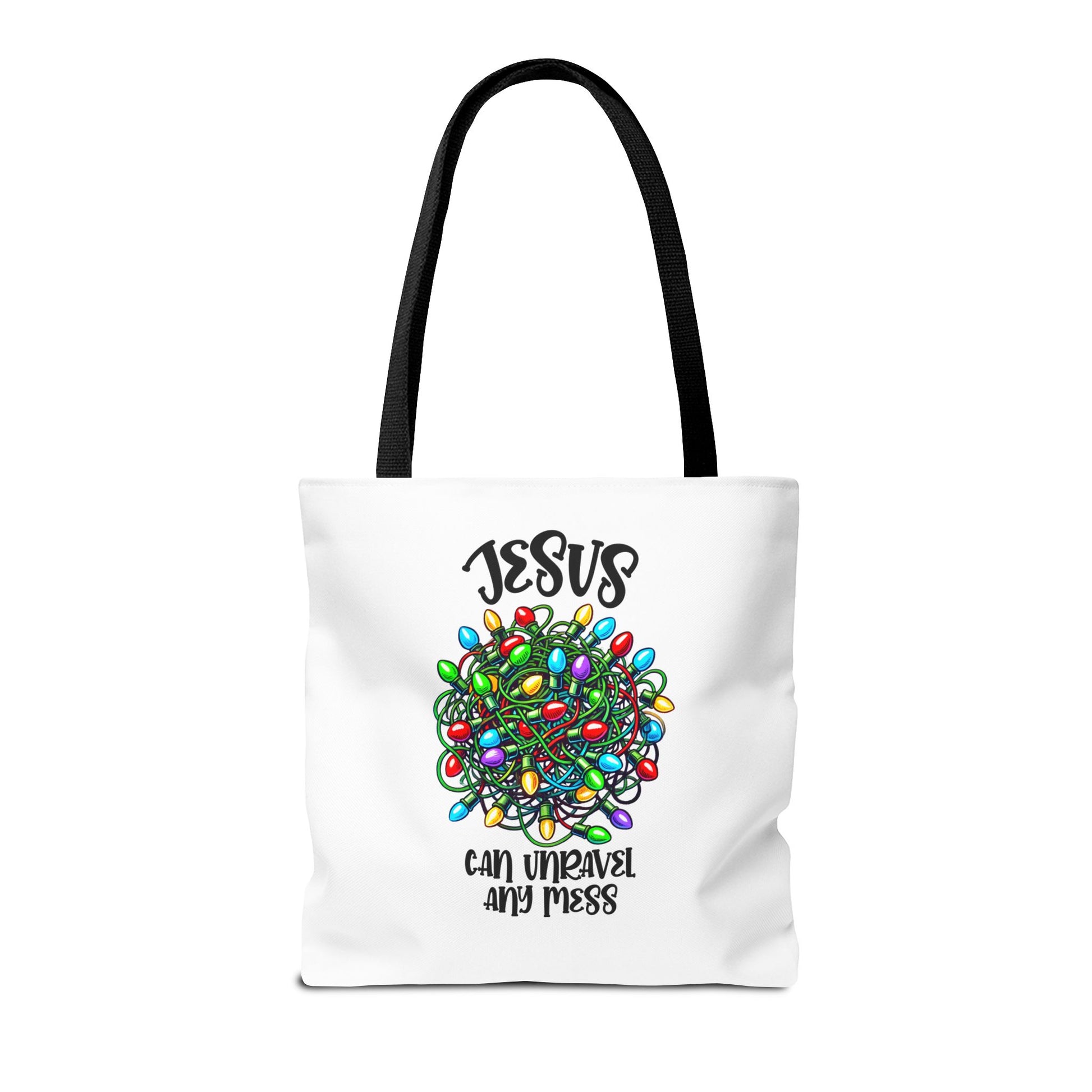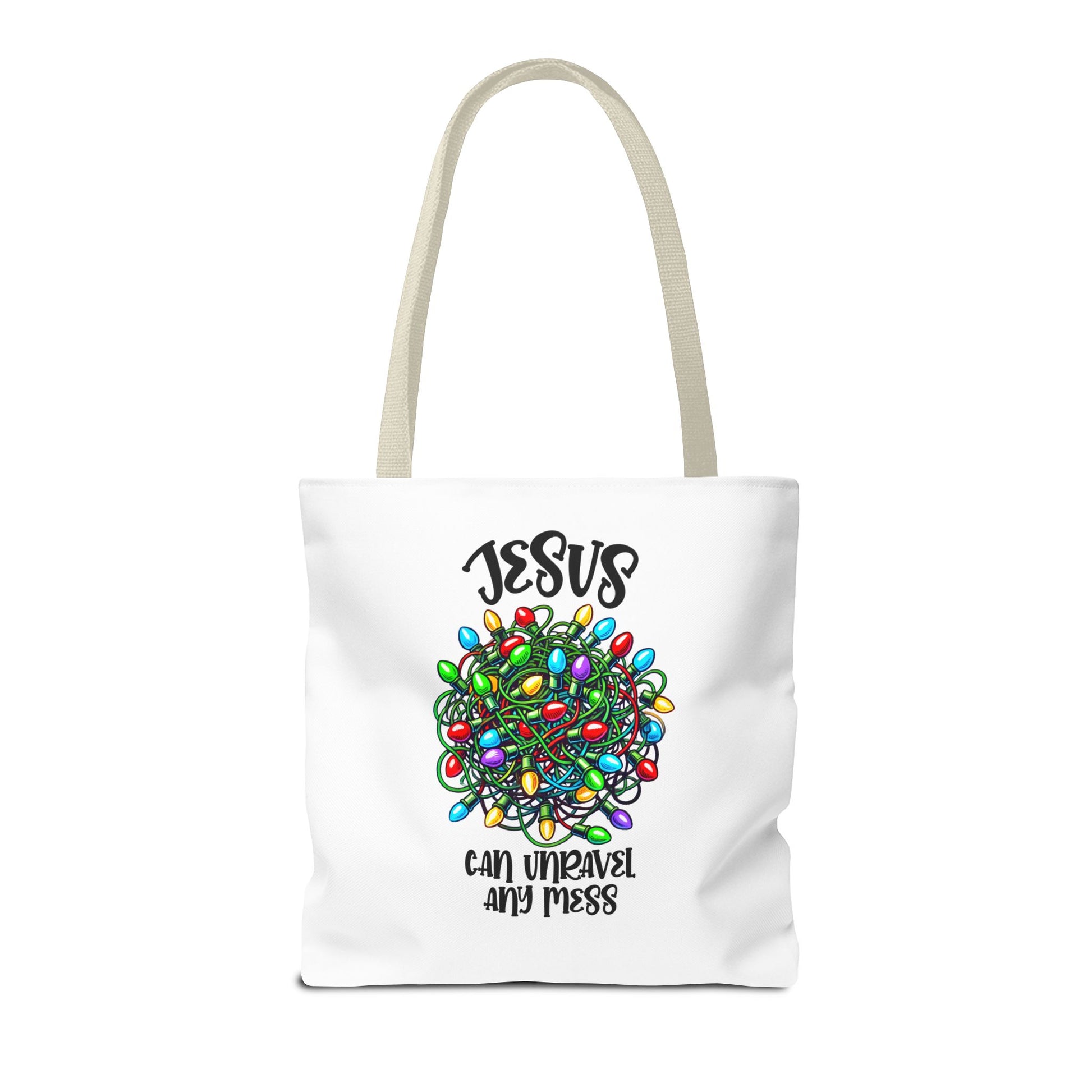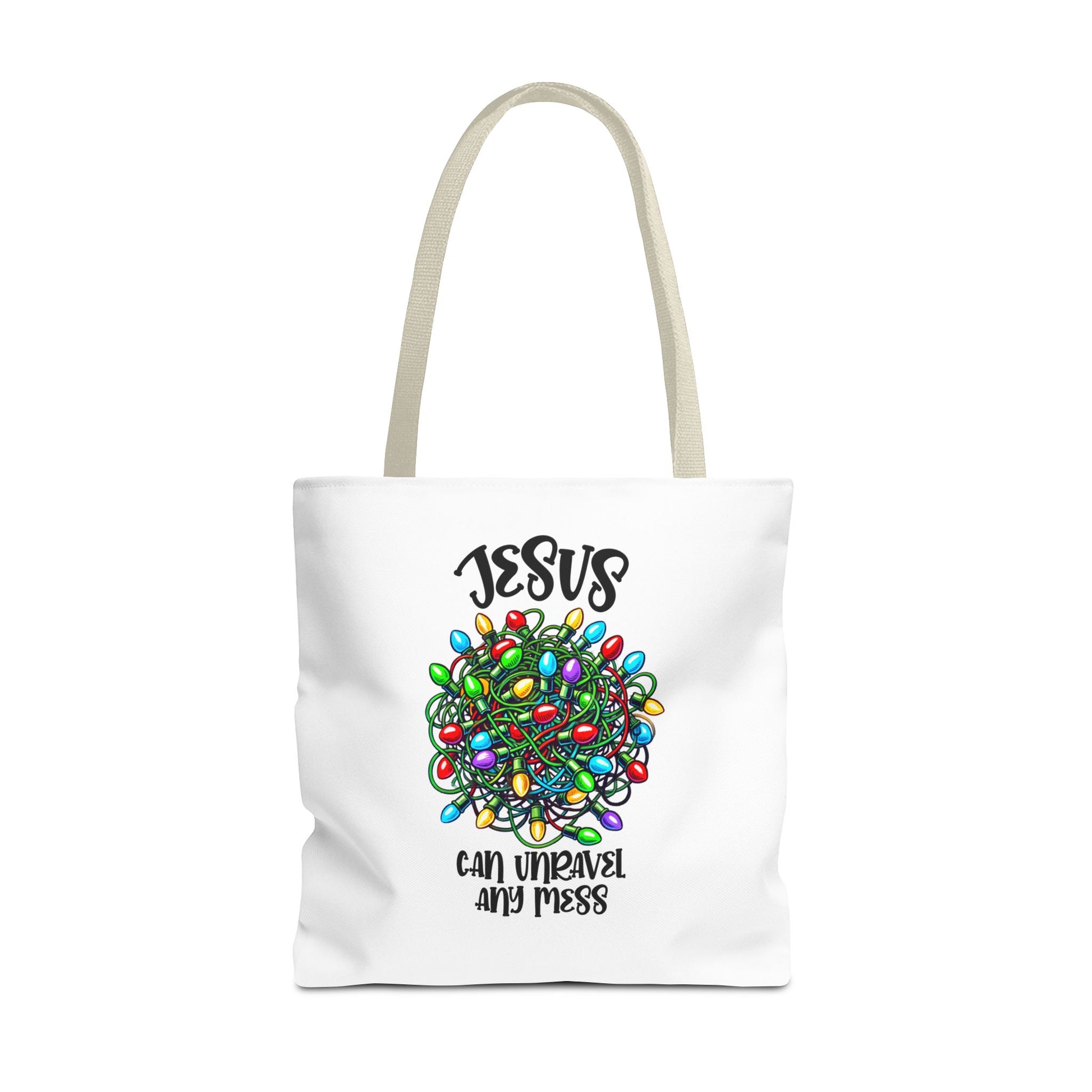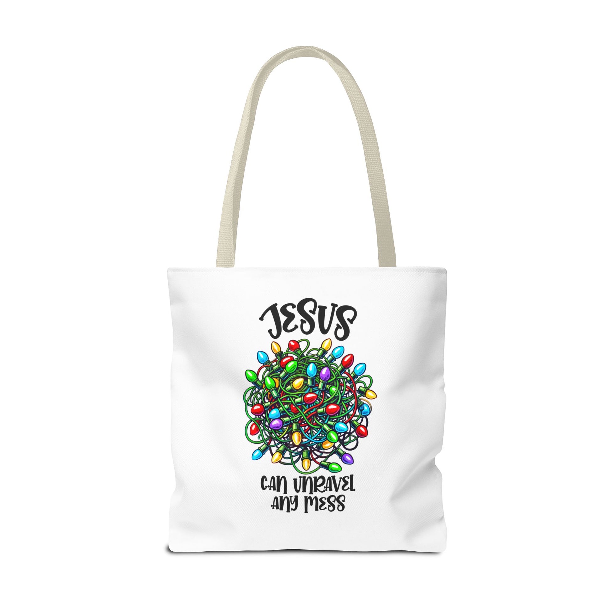 Jesus Can Unravel Any Mess Tote Bag (AOP)