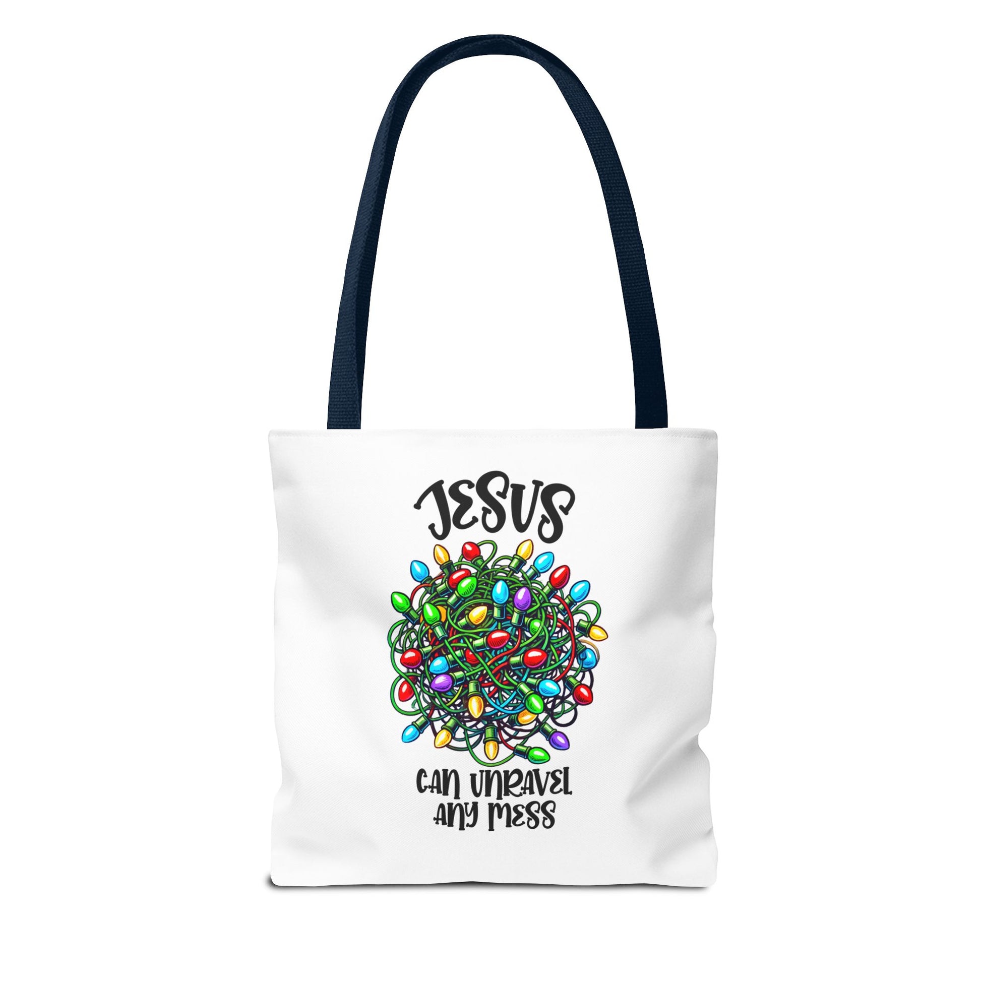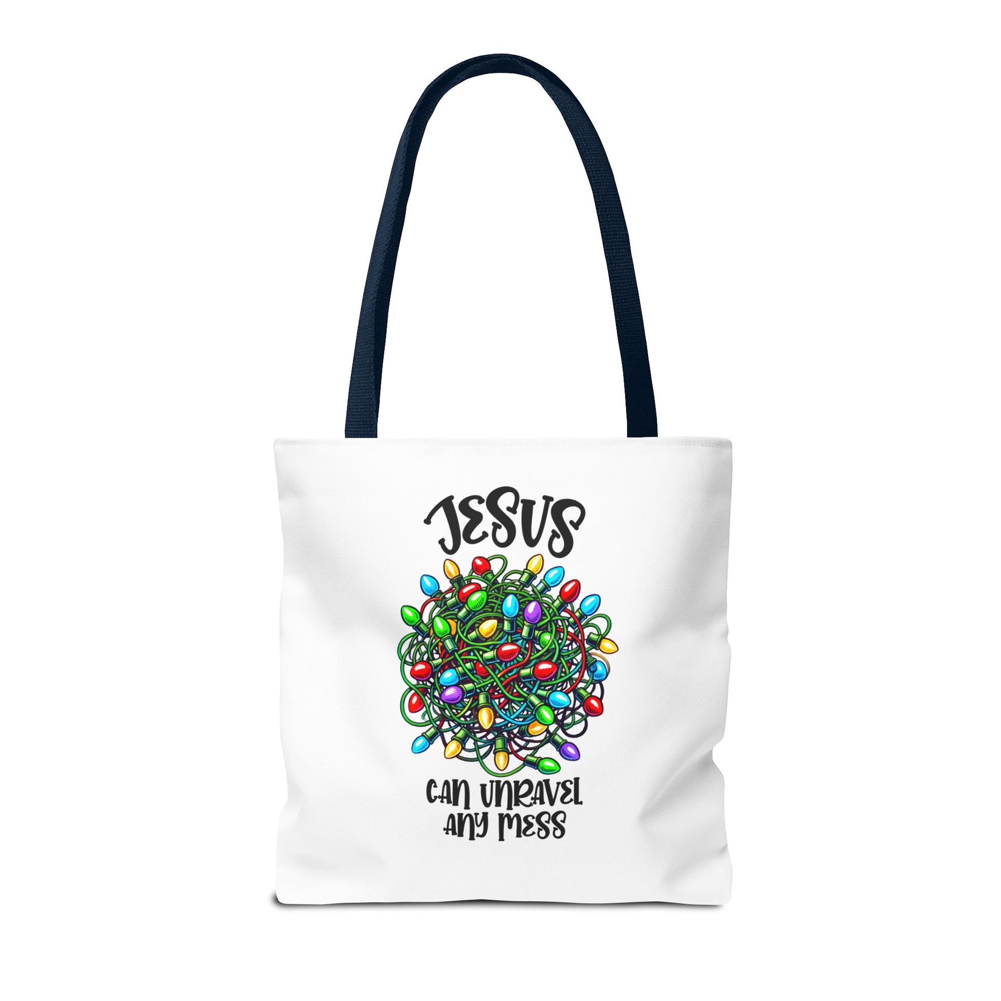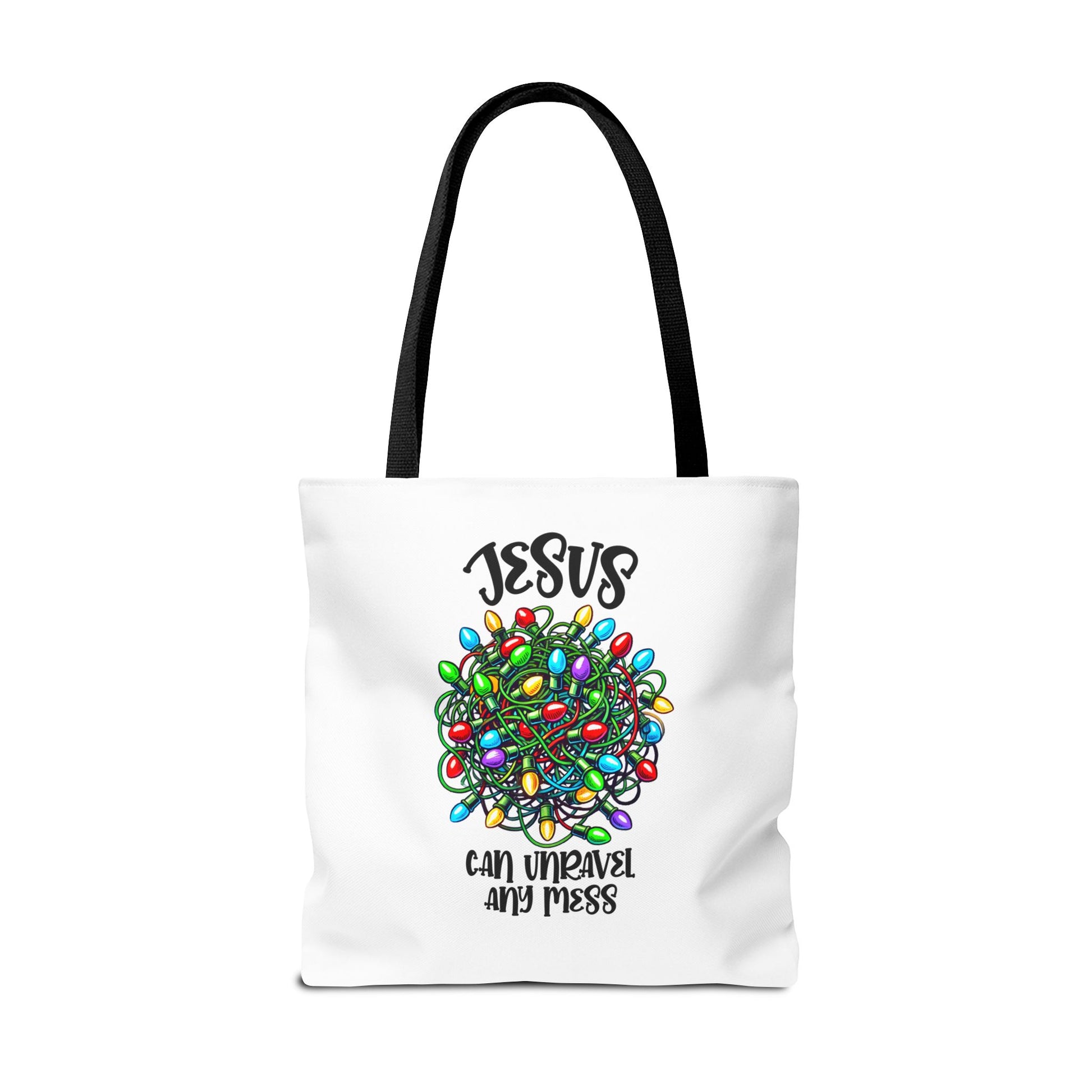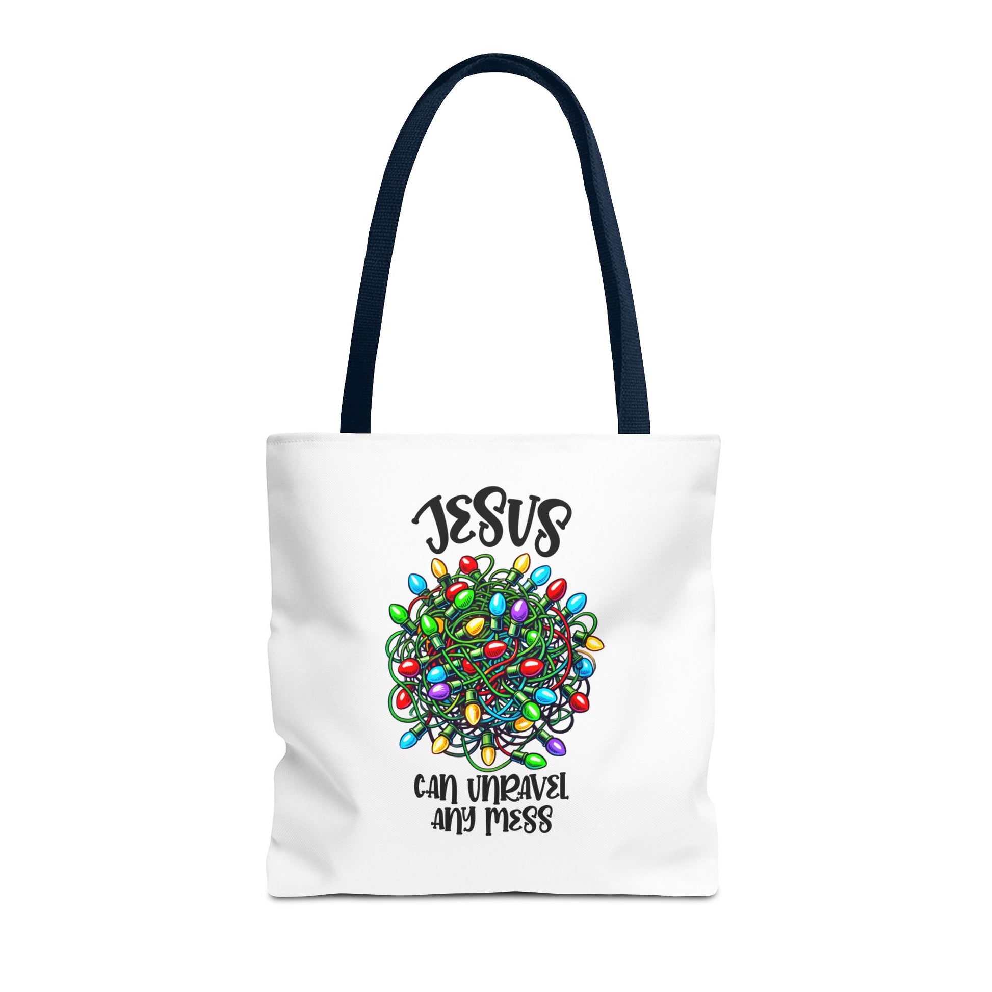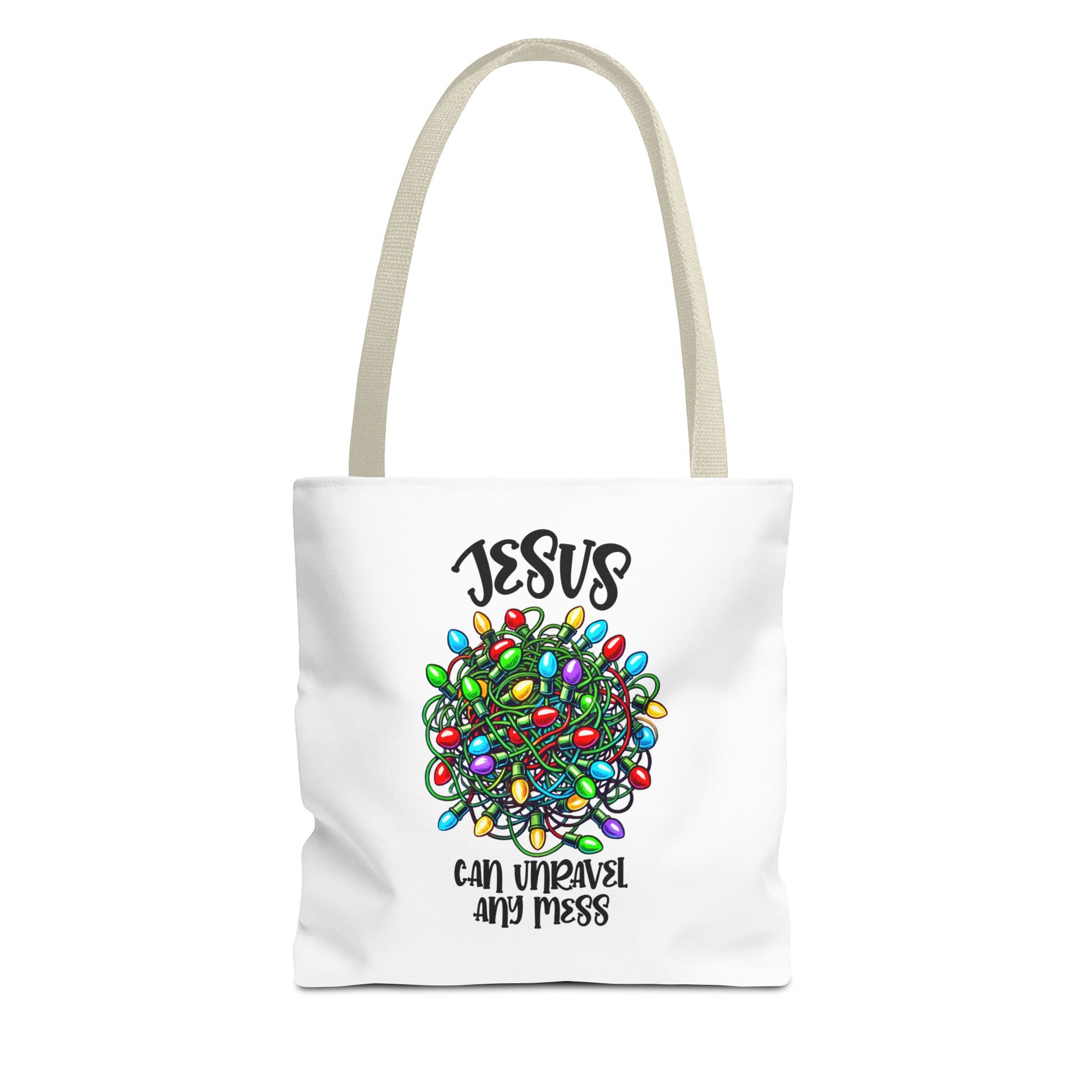 Jesus Can Unravel Any Mess Tote Bag (AOP)